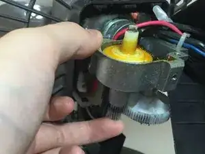 Сборку корпуса теперь можно снять и отодвинуть в сторону, чтобы открыть мотор вентилятора и зубчатую передачу.