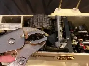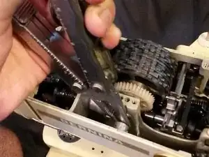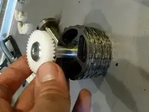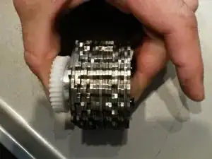 Сдвиньте маленькую шестерню к концу вала. Аккуратно сдвиньте вал назад с помощью тонкогубцев. Поймайте шестерню, чтобы она не упала.