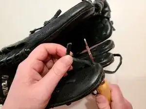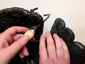 Чтобы снять шнур с бейсбольной перчатки, выполните эти шаги в обратном порядке.