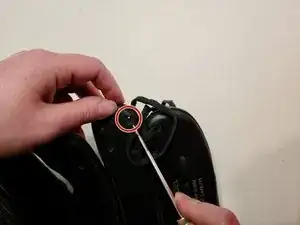 Вставьте шнур в нижнее правое отверстие на указательном пальце.