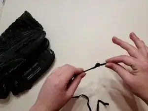 Привяжите конец шнура близко к перчатке.
