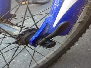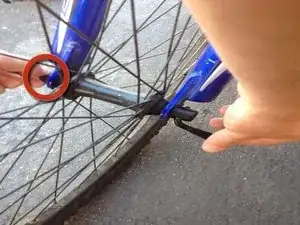 Убедитесь, что всё затянуто, чтобы колесо не могло снова соскочить.