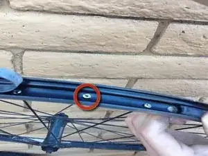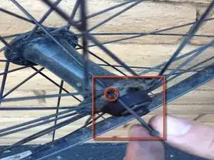 Используйте плоскую отвёртку и винт, снятый на шаге №12, чтобы прикрепить спицу к колесу, зафиксировав её на месте.