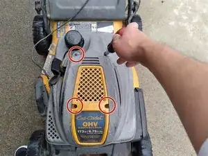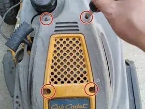 Открутите четыре винта с крышки газонокосилки с помощью отвёртки типа Phillips #0.