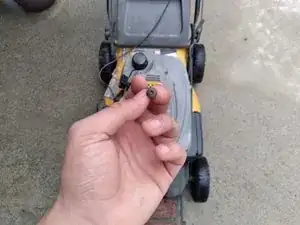 Закрепите крышку газонокосилки с помощью отвёртки типа Phillips #0 и четырёх винтов, которые были сняты ранее.