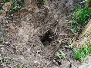 Вставьте новый столб в яму, оставшуюся от повреждённого.