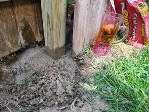 Если столб шатается, поместите крупные куски бетона для поддержки столба, пока будете готовиться к следующему шагу.