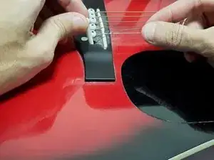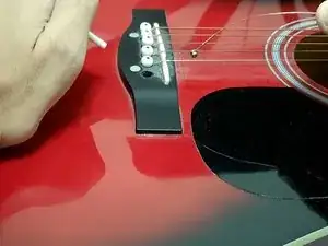 Удалите штифт моста, расположенный на нижнем конце гитары.