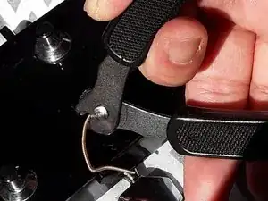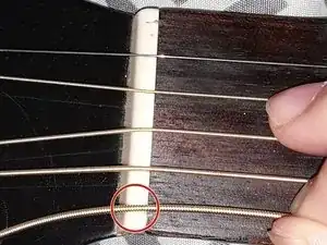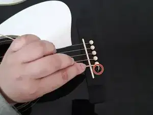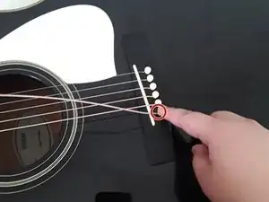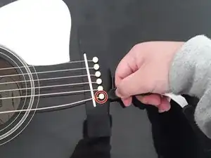 Осторожно потяните струну, одновременно нажимая штифт в отверстие.