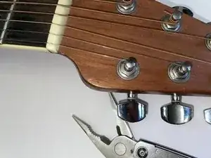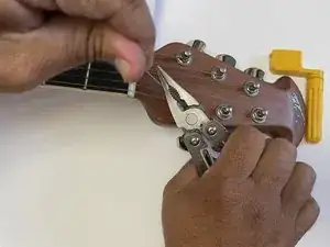 Обрежьте излишек струны плоскогубцами. Убедитесь, что срез находится как можно ближе к колку, чтобы струна не торчала.