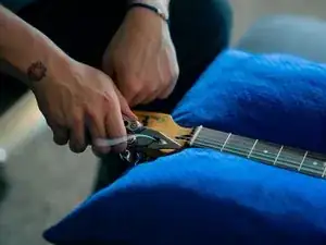 На этом шаге может потребоваться крестовая отвертка, если на гитаре установлена задняя крышка, закрывающая бридж.