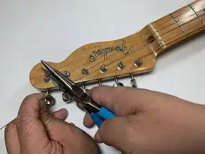 При замене пятой и шестой струн (самые правые) будет избыточная длина струны. Можно отрезать часть струны кусачками для проволоки.