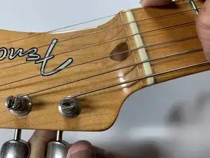 Держав конец струны у основания и внешний сегмент у головки грифа, поворачивайте колок по часовой стрелке.