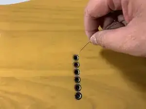 После разматывания виток струны, намотанный на колок, ослабнет. Вытащите струну из колка.