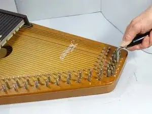 Струны автогарпы могут терять натяжение или рваться. В этом руководстве показаны шаги по замене отсутствующей или оборванной струны для автогарпы типа B. Демонстрация проведена на автогарпе Oscar Schmidt Educator Series, но применима для любой автогарпы типа B.