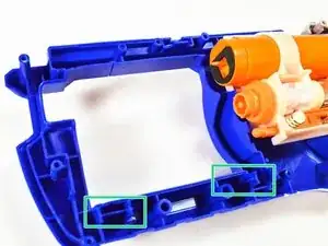 Другая половина механизма взведения соединена пружиной, которая может выскользнуть из бластера. Это нормально, но за этим стоит следить, чтобы не повредить пружину.