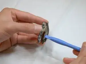 Поместите пластиковый инструмент для открытия ниже светодиода и отодвиньте его от устройства, пока не услышите щелчок.