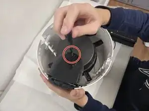 Снимите четыре винта длиной 1 см, которые закрепляют корпус вентилятора.