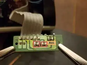 При удалении светодиодов «High» и «Medium» будьте осторожны, чтобы не потерять конденсатор. Они выделены красным. Возможно выполнить замену, не удаляя конденсатор с платы, как показано на Фото 2. При необходимости припаяйте его заново.