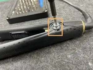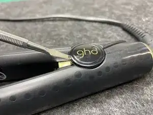 Снимите две пластиковые накладки петли, расположенные по обе стороны ghd, используя тонкую плоскую лопатку.