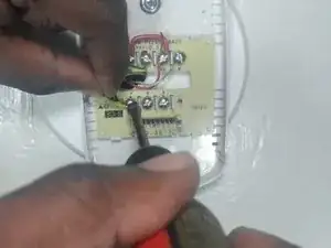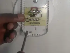 Присоедините новую основу термостата, используя крестовую или плоскую отвертку, чтобы завинтить винт Phillips #0 Plus.