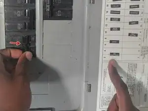 Найдите автомат кондиционера, который обычно помечен внутри крышки панели автоматов.