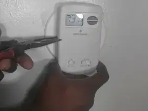 Отделите корпус термостата от монтажной панели. Он должен легко сниматься руками, но можно использовать плоскогубцы, если он застрял.