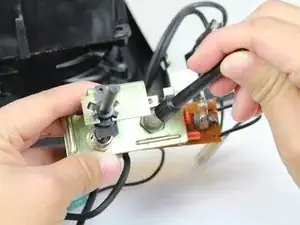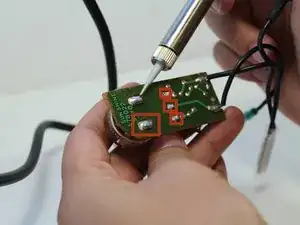 Используйте паяльник, чтобы удалить припой с пяти точек, соединяющих термостат с печатной платой. Оттяните термостат от печатной платы.