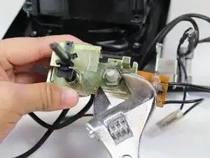 Снимите два винта Phillips 10 мм с помощью крестовой отвертки #2. Один крепит золотую металлическую скобу к корпусу нагревательной спирали, другой крепит держатель предохранителя к корпусу нагревательной спирали.