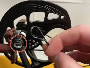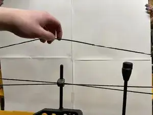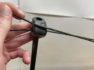 Повторно проверьте, что тросы правильно выровнены в настроечных отверстиях и что тетива с тросами успешно заменены.