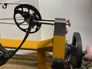 Используя станок, медленно натяните тетиву и тросы, пока лук не примет внешний вид, аналогичный состоянию до замены.