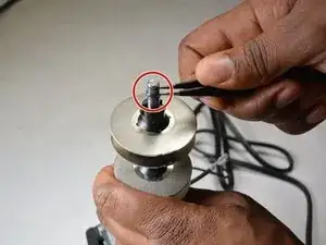 После снятия внешнего корпуса крепко возьмитесь за соединение мотор-ось и снимите его с основания. Оно должно легко сняться с узла.
