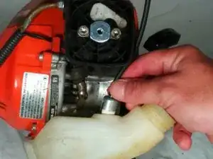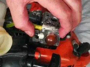 Ослабьте два винта, держащих карбюратор, битой Torx T27, поворачивая против часовой стрелки.