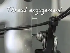 Если у вас нет штатной гайки, убедитесь, что между гайкой и осью крепления тормоза достаточная глубина резьбового соединения. Должно быть не менее 10 мм вхождения резьбы или «нахлеста» между гайкой и осью анкера тормоза, чтобы обеспечить безопасность тормоза.