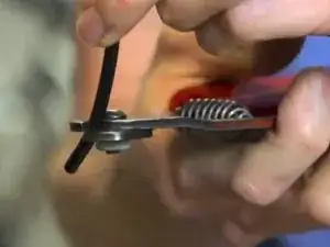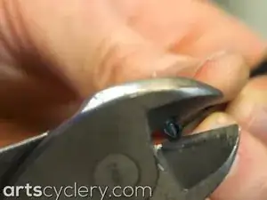 Наденьте обжимную гильзу на конец троса с помощью бокорезов. Будьте осторожны, чтобы не сжать слишком сильно и не разрезать обжимную гильзу.