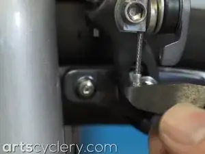 Настройте ощущение торможения с помощью барабанного регулятора натяжения троса. Поворачивайте против часовой стрелки, чтобы натянуть трос, и по часовой стрелке, чтобы ослабить трос.