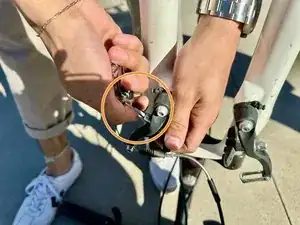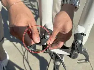 Затяните или ослабьте фиксирующий болт на тормозных лапках для регулировки по предпочтению.