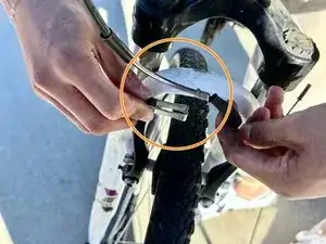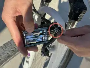 Ослабьте фиксирующий болт на тормозной колодке шестигранником 5 мм.