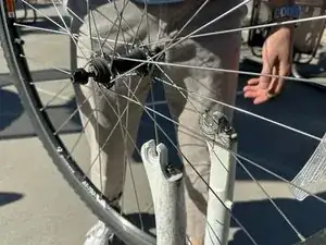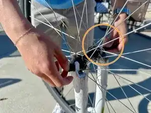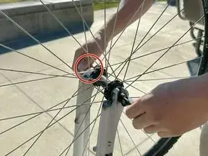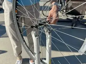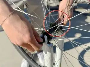 Закройте рычаг быстросъёма, чтобы зафиксировать колесо.