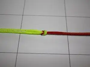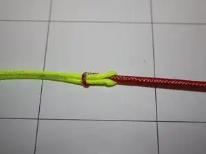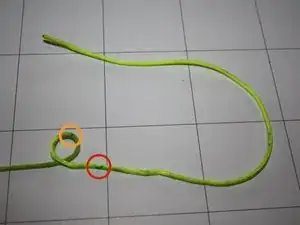 Чтобы раскрыть соединение «пропущено через петлю», сначала полностью протяните свободный конец жёлтой линии через петлю красной линии.