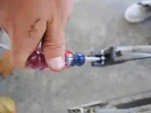 Не опорожняйте нижний шприц полностью, так как это приведёт к попаданию воздуха в тормозные магистрали и нарушит работу при попытке использования велосипеда.