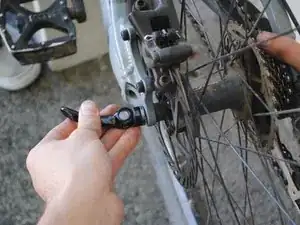 Возможно, у вашего колеса нет рычага быстросъёма. В этом случае используйте гаечный ключ, чтобы ослабить удерживающий болт. Размер ключа зависит от колеса.