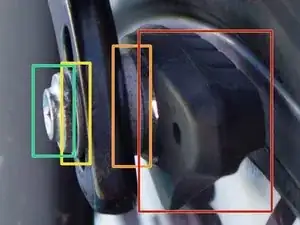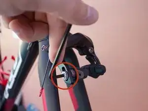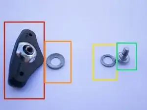 Будьте осторожны, чтобы не потерять ни шайбу, ни проставку, находящиеся между болтом и отверстием для крепления тормозной колодки.