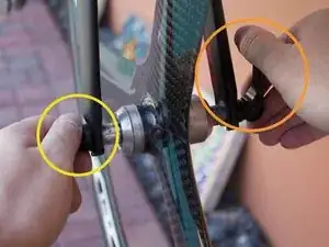 Освободите рычаг с правой стороны колеса.