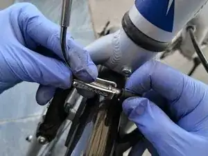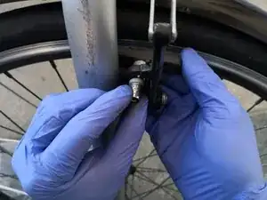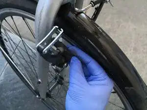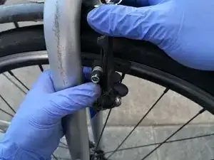 Встаньте непосредственно рядом с трубкой (изогнутой металлической трубой) механизма V-brake.