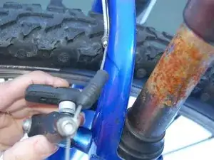 Установите велосипед так, чтобы Вы смотрели на тормозной механизм переднего колеса.