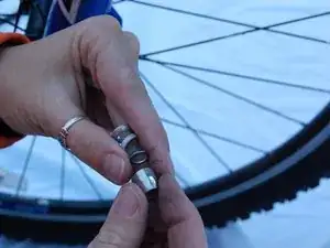 Снимите три шайбы, находящиеся между гайкой и суппортом. Они называются внешними шайбами.
