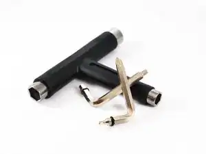 Сначала возьмите T-ключ. Если его нет, купите или используйте 3/8" головку и шестигранник или крестовую отвёртку (в зависимости от винтов на вашем скейтборде).