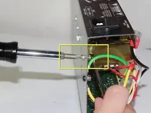 Используя отвертку Phillips №1, выкрутите два винта длиной 14,8 мм, крепящие трансформатор к монтажному кронштейну.