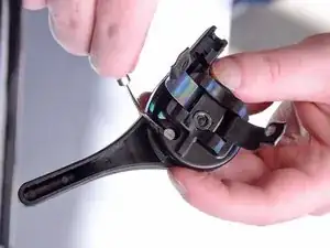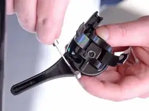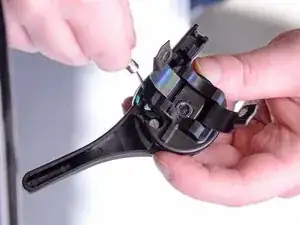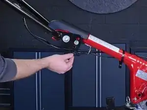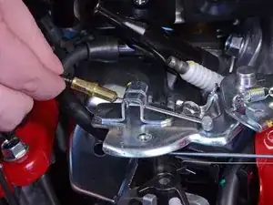 Удалите винт с крестообразной головкой Phillips #2 длиной 23 мм, фиксирующий рычаг газа к рулю.